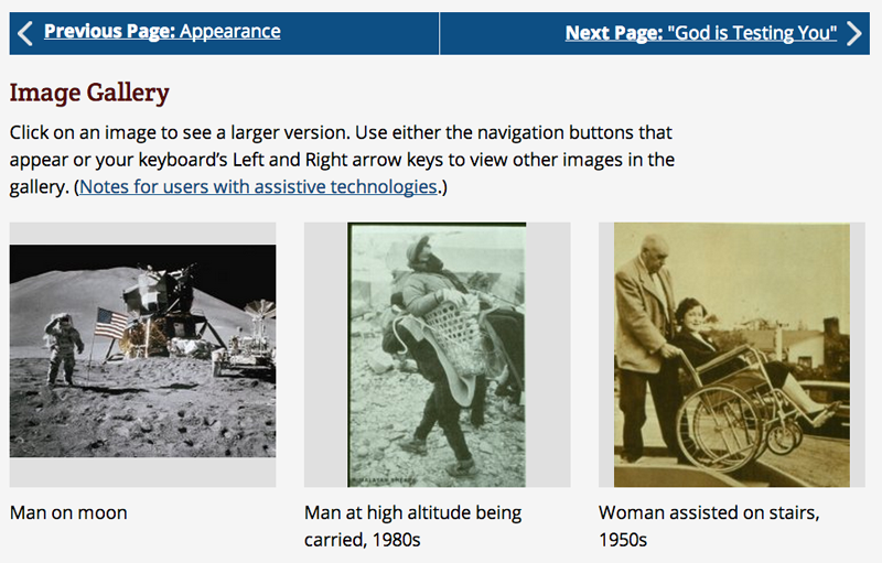 The Smithsonian Institute's exhibit on the history of disability is a moving tribute to one of the most overlooked segments of our society. We researched accessibility including markup protocol, input/output devices, images/color techniques, text scalability, and more. The result is a site that is accessible and inspirational to all.