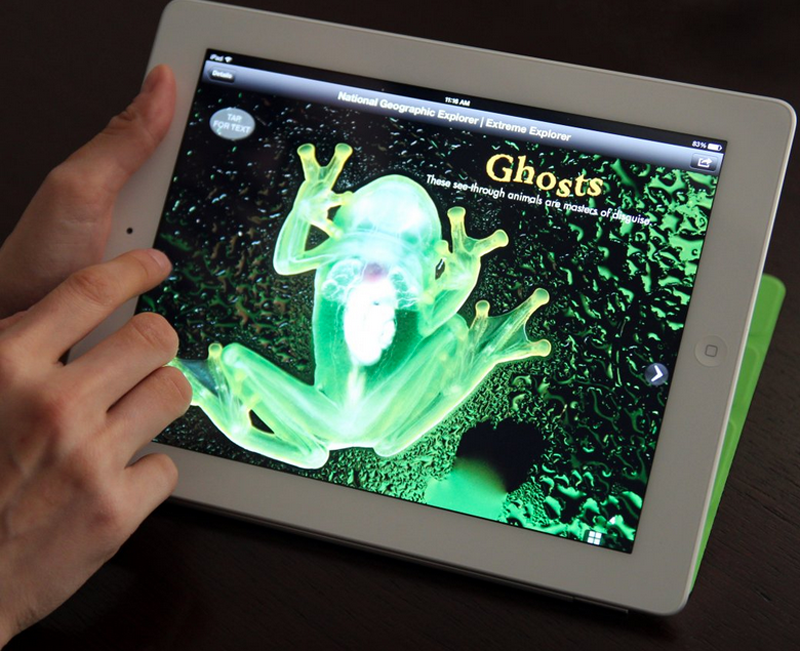 National Geographic has created a digital version of their Explorer magazine for publishing on iPad and Android tablets. I was given the opportunity to infuse transitions, animations, and CSS effects, to make their stories and lessons a fun, interactive experience for students. I headed a group of developers to the delivery of 4 editions of the magazine for the months of October and September. Application publishing was done through a third party, and we used Hammer.js for gesture-handling.