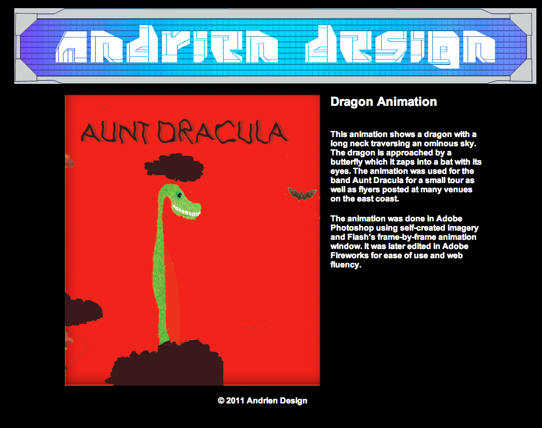 Interested in some of the work that I did during college? This site was conceptually based off of Tron, and features HTML5 and CSS3 techniques (which were fairly new at the time). It also showcases some of the more simple web design and artwork that I completed through college.